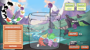 Drop and merge dinosaur eggs of increasing sizes to create larger dinosaurs and score points. Can you create the mighty Titanosaurus?